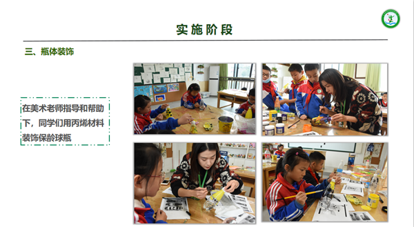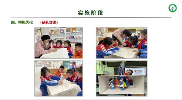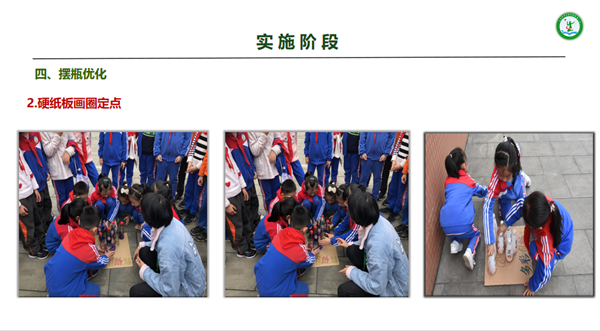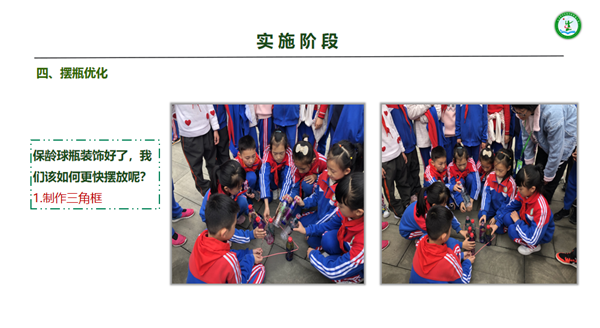 从材料选择、重量确定、瓶体装饰、摆瓶优化和球箱改进,孩子们围绕问题解决进行了条理清晰的陈述,字字珠玑。老师在这个过程中穿针引线,适时点拨,让舞台成为孩子们的主场,让孩子们尽情闪亮。