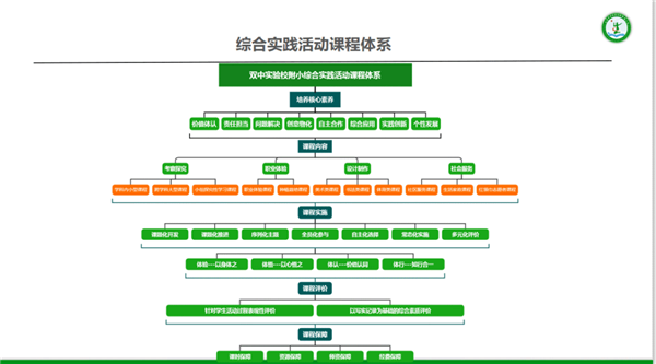 双中实验校自2003年建校以来,在高志文校长的引领下,一直致力于以“系统构建校本课程体系来推动学校实施素质教育”的课程改革之路。目前构建了以“课程改革——综合实践活动课程”为核心的素质教育模式。2016年,双中实验校附小成立,附小秉承生态教育理念,传承教育集团的素质教育愿景,结合小学学情和特点,开发具有附小生态教育特色的综合实践活动课程。在最新指导纲要出台后,积极整合现有课程体系和内容,形成了独具特色的课程结构。