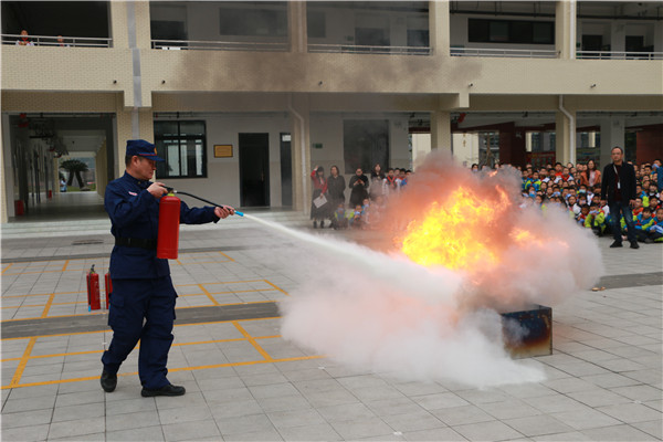 为进一步加强校园消防安全活动,切实提高广大师生的消防安全意识,有效的预防和处置突发性火险事故,保障学校财产和人身安全。邛崃市羊安小学于2020年11月18日举行了“消防安全演练”活动。活动过程由羊安镇消防队员们及全体师生一起完成。