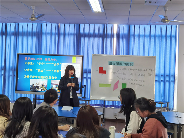 11月19日,阳光明媚,五、六年级数学教研员刘艳老师来到成都市泡桐树小学西区分校(以下简称:泡小西区),参与、指导泡小西区“顺应学情,以学定教,面积单元的结构化教学”数学研讨工作。