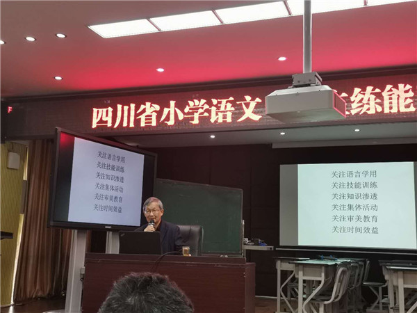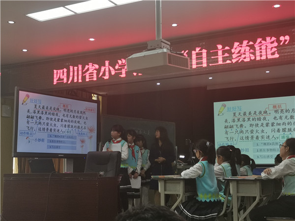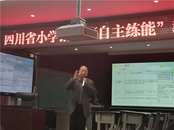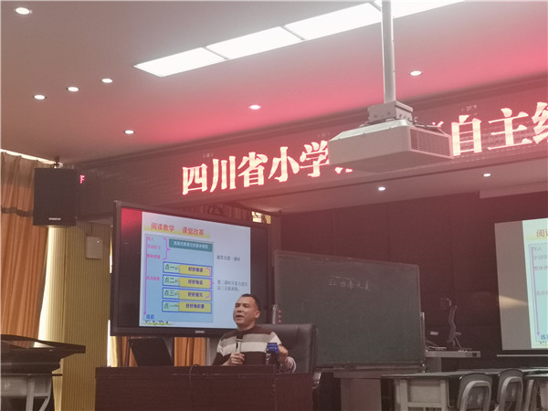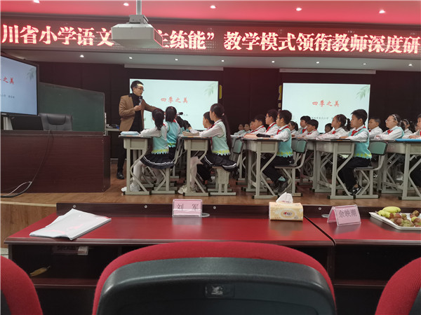 15日下午,培训活动在德阳市东汽小学教科室主任、冯学敏语文工作室成员谢长林老师的课例《四季之美》中开启。谢老师凭借精湛的教艺、亲切的语言,让现场教师、学生领略了“四季变化”的美的享受。