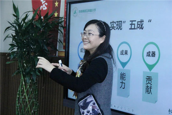 工作室成员、菁蓉小学马丽老师以《陪伴 协同 提升》为主题,就学校菁华中心建设做了分享。无论是回眸时的喜、累、顺,或是“1=6”(一个办公室、一个中心名称、一个微信群、一个家庭、一个工作目标、一个工作原则),还是组建时的宽容理解,赏识激励;及时反思,集智共筹,无不渗透着中心组成员的努力与默默付出。