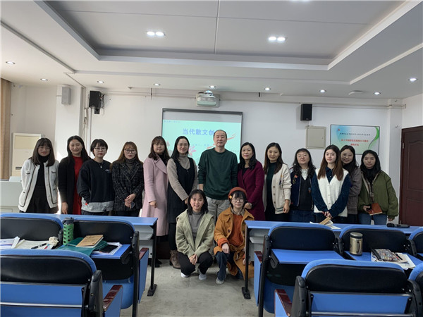 讲座中,蒋蓝老师讲述了一个他指导三位学生参加文学夏令营的故事,生动具体地向教师们展现了如何打破传统观念、有效地指导学生成为一个会写作的人。他提到:“比喻,用最虚幻的来比喻最实际的,用最实际的来比喻最虚幻的。”现场教师听得入神,之后大家纷纷积极与蒋老师合影留念并以热烈的掌声欢送蒋老师。