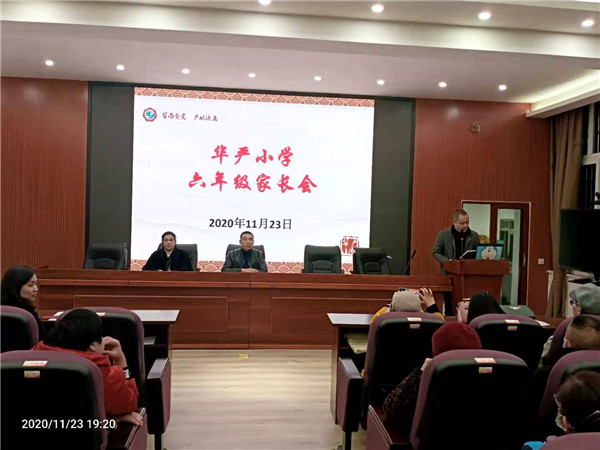 11月23日,成都市青白江区华严小学在和乐校区学术报告厅召开以“放飞希望,成就梦想”为主题的六年级家长会。华严小学校长陈周民,副校长彭涛,教导处主任廖家秀,以及六年级全体教师、家长共同参加了此次会议。