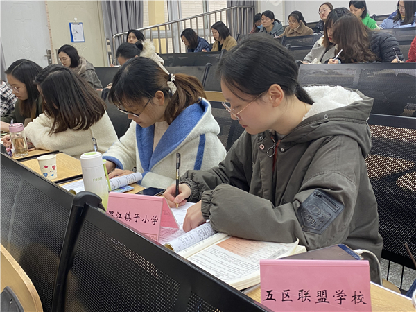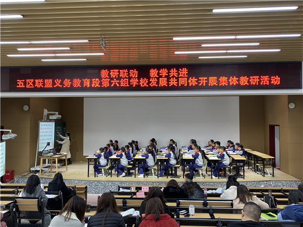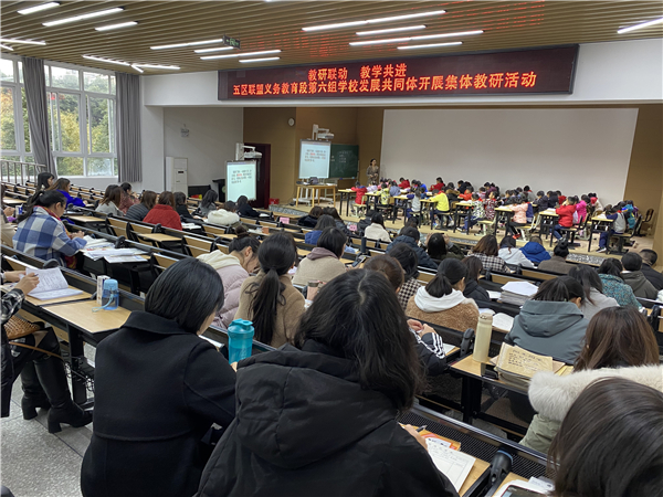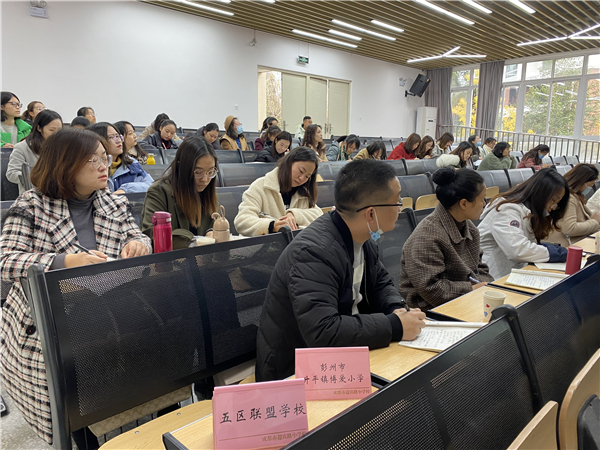 为推进区域教育联盟,强化资源共享和校际合作,11月23日,成都市第五区域教育联盟义务教育段第六组学校发展共同体齐聚迎宾路小学,开展主题为“教研联动 教学共进”的集体教研活动。成都市迎宾路小学校、彭州市升平镇博爱小学校、崇州市辰居路小学、温江镇子小学、简阳市平窝乡九年义务教育学校近60名教师参加了本次教研活动。区政府责任督学王玉兰、区教科院语文教研员杨明做现场指导。