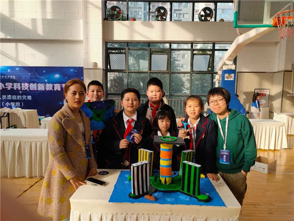 在副校长郭俊宏、科学老师李雪梅和黄素老师的带领下,五、六年级五名同学组成创新小组参加了大赛。在科技节开幕式过后,他们参加了“未来城市——应对人类面临的灾难”创意大赛,耗时三个小时设计制作了“诺亚方舟”这一城市模型,这一城市模型利用废旧物品搭建,节约环保,外形美观,将实现在未来城市面临灾难时人类得到庇护,体现了孩子们的创造力和想象力。