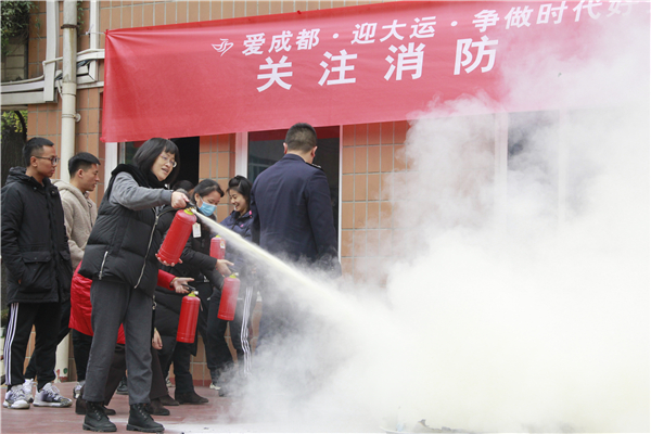 体验环节,利民消防的张教官详细讲解了灭火器的使用方法以及操作要点。成都市胜西小学师生代表进行了真实火源灭火,使大家对灭火器的使用方法有了更深的认识。