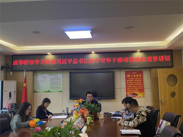 为加强学校教师思想教育,提升教师政治素养和教书育人能力。近日,成华区特殊教育学校(以下简称:成华特校)先后组织全体干部教师认真学习党的十九届五中全会精神和习近平在中央党校(国家行政学院)中青年干部培训班开班式上的重要讲话。