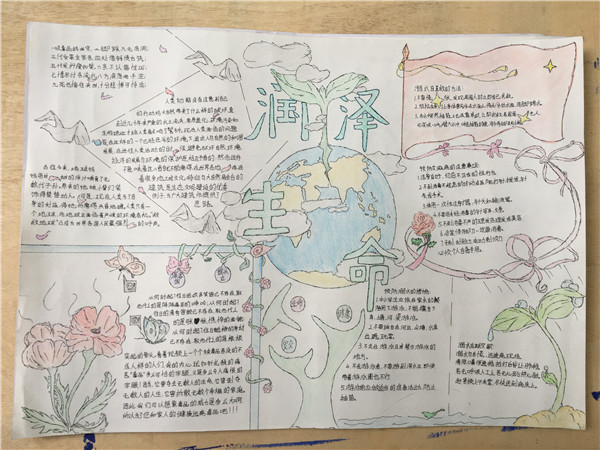 各班纷纷以手抄报、绘画等形式开展“润泽生命”主题教育。