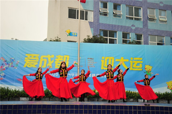 藏族舞、傣族舞、维吾尔族舞蹈……小泡泡们的歌舞表演感染了全校师生,赢得了阵阵掌声。