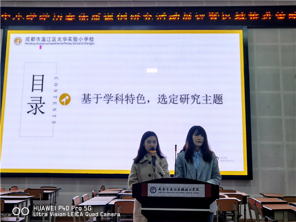 第一项议程是课前陈述,由光华实小徐琪老师和黎颖老师做汇报。以学历案为载体,《基于学历案促进小学科学课堂学生深度学习策略研究》为主题,从研究背景、研究策略、课例研究价值及过程、观点聚焦四个方面交流分享怎样在课堂让学生的深度学习真正发生。