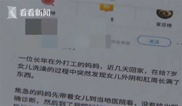 微博中写道:接着,在妈妈的逼问下,小女孩终于说了。因为奶奶每天晚上只带着弟弟睡,而她则被爷爷带着一起睡觉,每天晚上爷爷都让她脱掉裤子……