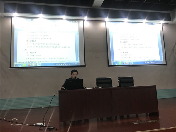 11月16日教师例会时间,教学管理与质量监测中心主任陈义对本期半期检测工作进行了全面周密安排。要求严肃考风考纪,规范考务工作。严格的考前培训,进一步加强了学校质量监测的过程管理,坚持学校良好教风学风传统。