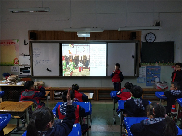 这一次,班级足球队要为全班普及足球文化,同时为激发同学们参与体育锻炼的热情,12月4日,以纪念足球巨星马拉多纳为立足点,三(五)班开展了以“致敬足球”为题的主题班会活动,活动由班级足球队队长李雪再美和副队长赵崐钰同学主持。