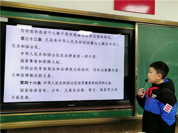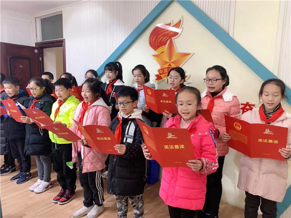 在12月4日第七个“国家宪法日”到来之际,成都市人民北路小学西区(以下简称:人北小学西区)全体队员进行了 “宪法晨读”活动,以更好的传播宪法文化、传递宪法精神,维护宪法权威,培养青少年的法治意识。