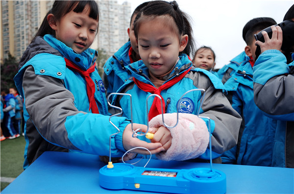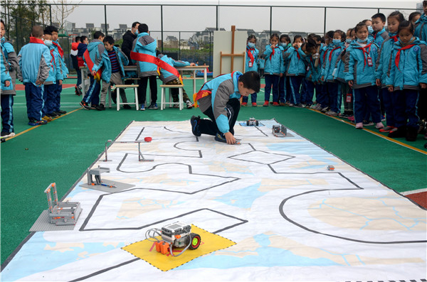 活动现场气氛热烈,秩序井然,光华实小学子的创新精神和动手能力让人印象深刻,师生在体验交流和思维碰撞中又有了新的感悟与收获。全体同学分组到现场参观,体验旋转陀螺体验色彩的奥秘、手拉手围成一个完整的圆圈点亮验电球、观看神奇的化学色彩变幻、驻足观看机器人超级轨迹赛、拿起3D打印的作品仔细观看、体验无人机竞技穿越、与HELLO机器人互动留念……同学们流连忘返,操场上洋溢着对科技探索的热情。