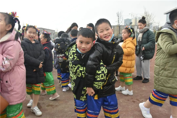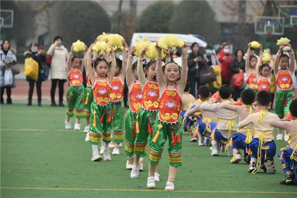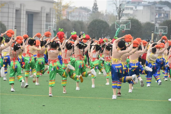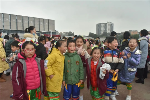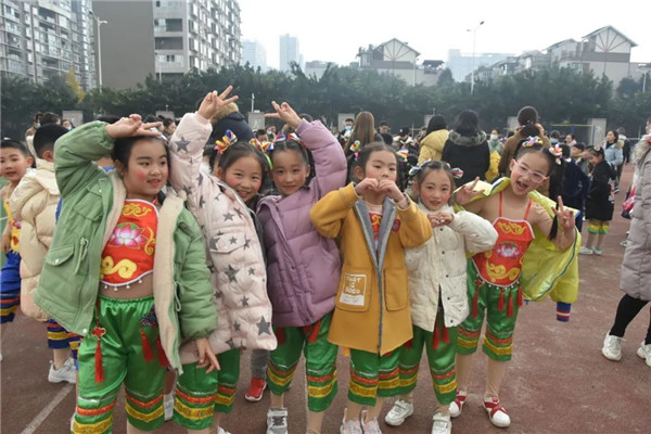 12月6日,成都天府新区第六小学(以下简称“天府六小”)集体舞《百子献瑞》在天府新区第一届“天府杯”校园足球总决赛展演。