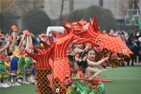 现场的100名小朋友激情洋溢、热情高涨,富于传统韵味的演出为观众们带来一场视觉盛宴。