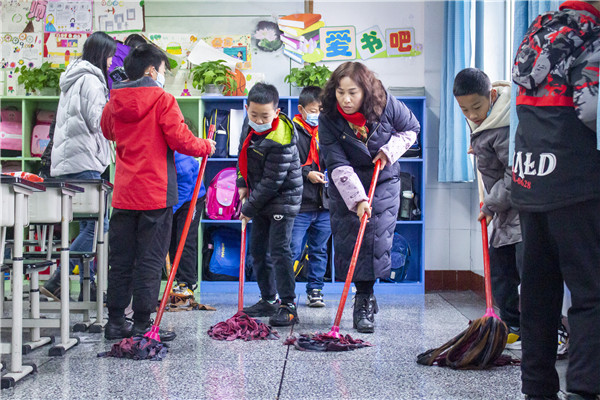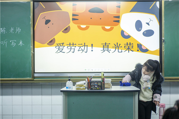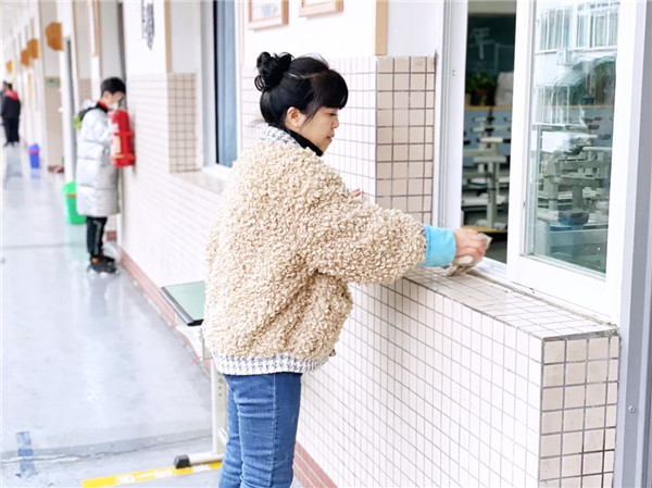 活动中,全体师生齐动手,从墙面到地面,从前面到后面,从教室到园区,不放过教室和校园的每一个细节,每一个角落。