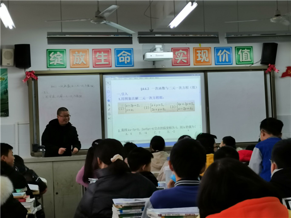 2020年12月16日,青白江区龙王学校邓树道老师在八年级二班执教了《二元一次方程组与一次函数》骨干教师示范课。学校初中数学教师进行了听课,并在第2节进行了评课。