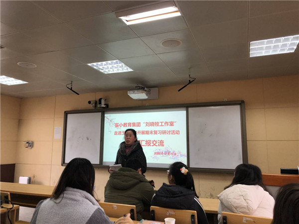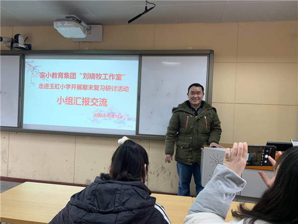 此次活动共分为三个环节。首先,玉虹小学青年教师和刘晓牧工作室成员们以年级为单位进行了分组研讨。老师们针对本年级的教学要点,从复习内容、复习方法、复习重难点、学困生辅导等方面进行了细致的研讨,让每位老师对期末复习有了明确的方向。接着,由各小组组长对本小组研讨成果进行了交流汇报,让大家能够相互借鉴,弥补不足。