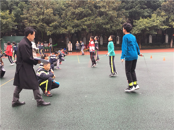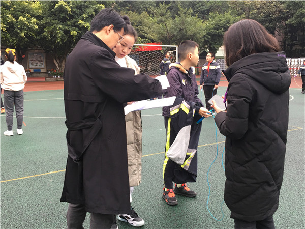 接着,现场抽取学生进行体育与健康检测。现场抽取学生进行跳绳、足球等体育项目的检测。专家们表示,学校学生跳绳能力普遍较强,学生跳绳成绩优异,充分体现了成都市传统项目(跳绳)训练学校的水平。专家们还和学生座谈、参观学校校园,对同学们良好的行为习惯给予表扬,对桐梓林小学整洁优美的环境表示肯定。