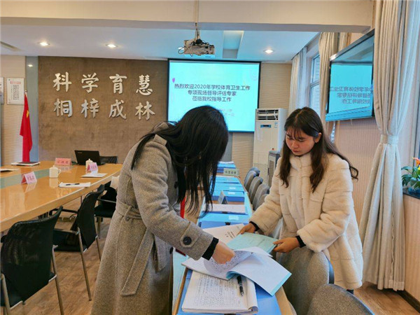 专家们首先查阅资料,对学校体育卫生工作在教育教学、制度保证、责任落实、规范执行、设备设施、学生健康等方面的情况进行评估。资料显示学校有充分落实“体锻一小时”,体育卫生常规工作也获得了专家组的好评。