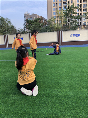 “打沙包”“跳橡皮筋”“抓石子”“跳房子”……在二年级7班的体锻课上,老师把这些童年的游戏教给了孩子们,孩子们很快掌握了玩法和技巧,在操场上快乐地奔跑、跳跃,享受操场带给大家的清新与热烈。