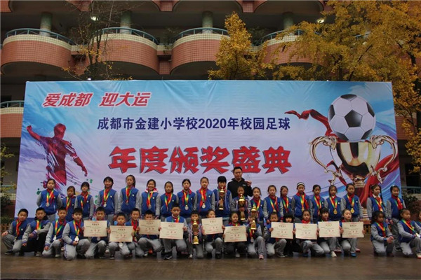 2020年12月16日,成都市金建小学“爱成都 迎大运”校园足球颁奖盛典在学校操场隆重举行,全校师生参加了本次典礼。