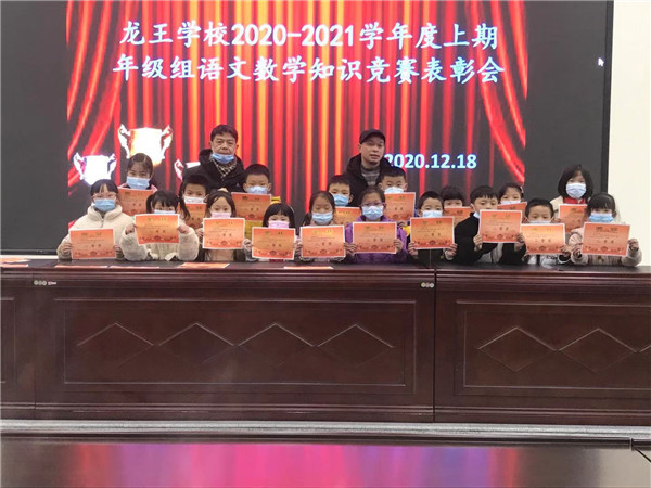 12月18日下午,青白江区龙王学校召开2020-2021学年度上期年级组语文数学知识竞赛表彰会。