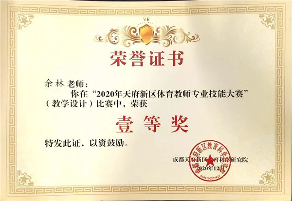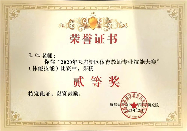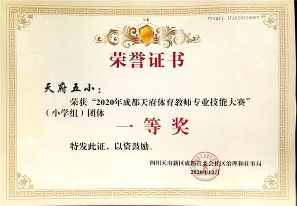为推进中小学体育与健康课程改革的深入发展,提高课堂教学质量,提升体育教师专业素养,同时搭建体育教师交流的平台,2020年成都天府新区体育教师专业技能大赛于10月16日至17日,在华阳中学举行。经过激烈角逐,成都天府新区第五小学(以下简称:天府五小)体育组一举斩获2020年成都天府新区体育教师专业技能大赛(小学组)团体一等奖。体育组教师在教师体能技能、教学设计更是荣获傲人佳绩。