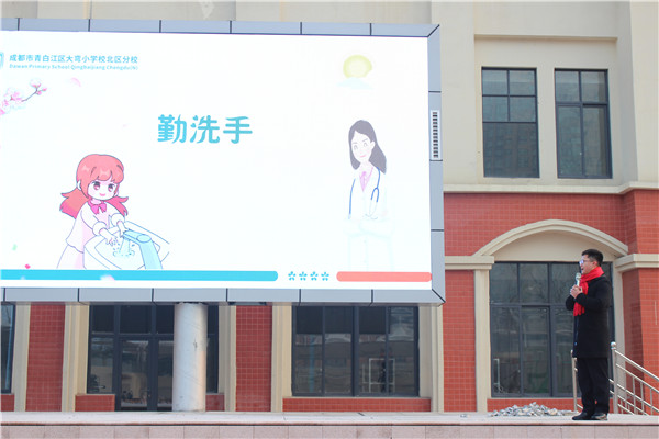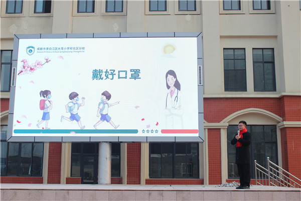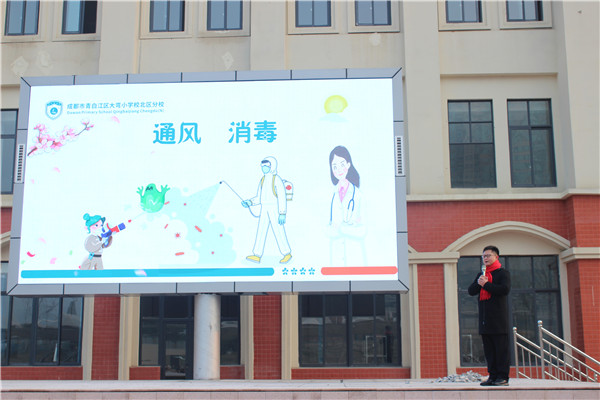 为贯彻落实省市区近期关于疫情防控的文件精神,成都市青白江区大弯小学副校长阳铁桥在学校第十七周升旗仪式上为全体师生做了关于疫情防控和校园食品安全的主题宣讲。