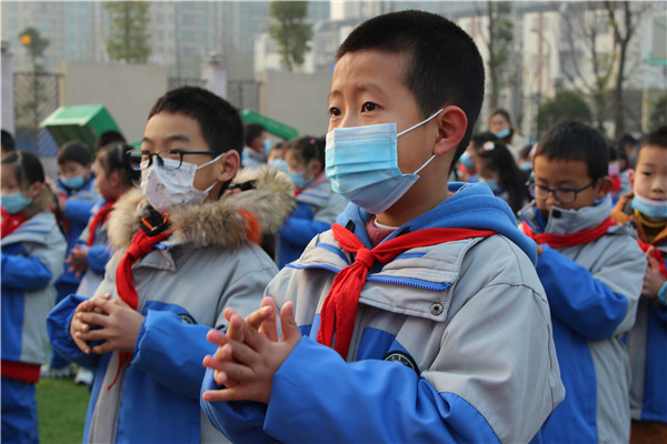 针对大弯小学北校区“小弯豆”们年龄小、注意力难集中的特点,阳铁桥副校长制作了有趣的动画人物课件,结合疫情防控知识,向全体老师和同学讲解了疫情防控的重要性和防控措施,巧妙地运用疫情防控三字经“测体温、戴口罩、勤洗手、多通风、常消毒……”和小朋友共同诵读,还现场让同学们和自己一起做“七步洗手法”,小朋友一边学习、一边动手练习,操场上孩子们的热情驱走了冬天早晨的寒冷,孩子们在快乐的搓搓手活动中学会了爱护小手清洁、保护身体健康的方法。