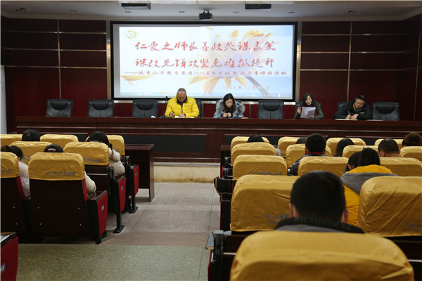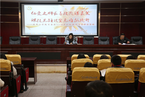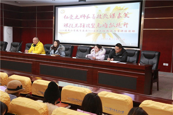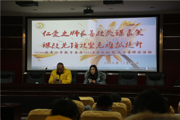 为了把好2021届毕业班出口,树立2021届毕业班新标杆,落实立德树人根本任务,12月21日下午5点,彭州市延秀小学教育集团召开了2021届毕业班教改质量分析评估会。会议由延秀小学副校长高雪霞主持,六年级全体学科教师、教育集团学校毕业班老师等60余人参加了本次活动。