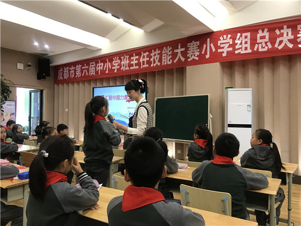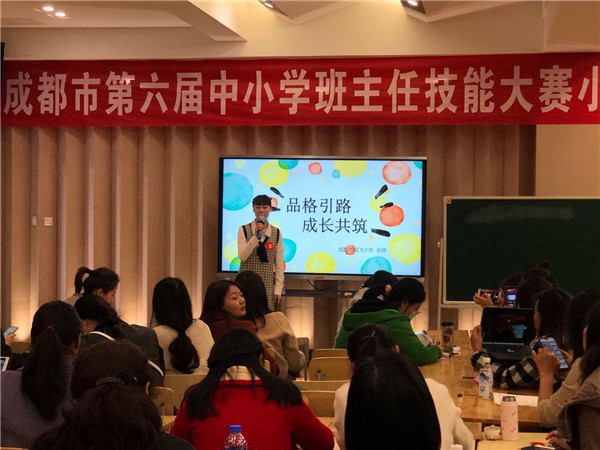 中小学班主任技能大赛是成都市教育局宣教处和市教科院组织的重要赛事,是提升班主任专业水平、彰显班主任教育智慧、展示班主任综合素质和个人风采的年度盛会。本届大赛自今年五月启动,经学校初赛、区(市)县复赛、市级决赛,历时半年有余。经过层层选拔、重重考验,进入决赛的选手要参加包括主题班会赛课、治班策略展示、模拟家长会发言、班级突发事件处理分析、教育案例撰写等5个项目的角逐,只有业务素质过硬、综合素质全面的选手,才有机会获得殊荣。