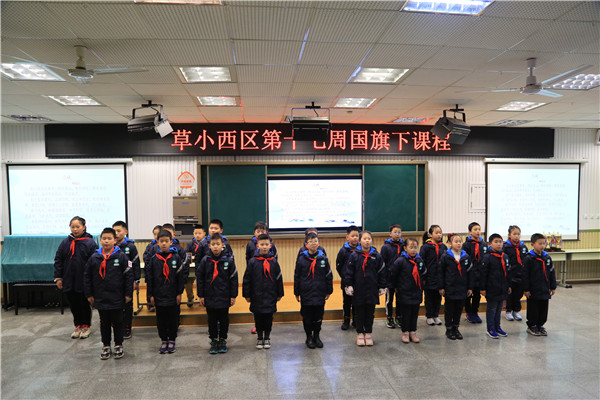 “亲爱的老师、同学们早上好!今天是12月21日星期一,农历冬月初七,欢迎收看草西新闻联播。”伴随着两位小主持人洪亮的声音,成都市草堂小学西区分校(以下简称:草小西区)新一周的国旗下活动以新闻播报的方式拉开了序幕。