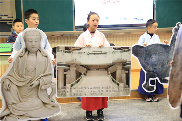 伴随着孩子们的朗朗诵读声,我们仿佛置身于三峡之中,穿越到千百年前,听文物们将前世今生娓娓道来。悠悠岁月,留下了无数的传世之作;静静倾听,感受那流传千年的经典之美。