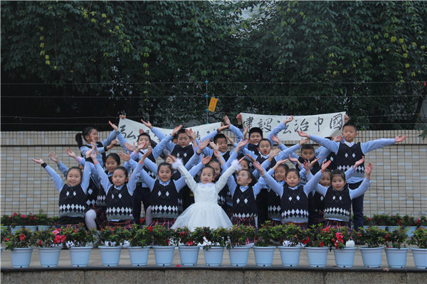 身体健康靠锻炼,国家安定靠法治。《法治三字经》节目让孩子们明白了“没有规矩不成方圆”“国无法不治,民无法不立”的精神。最后,家长用苍劲有力的“弘扬宪法精神,建设法治中国”的对联,寄托了对建设更加完善的法治中国的期盼。