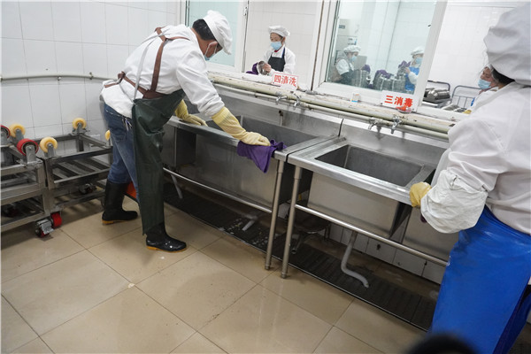 教室中,班主任和各位当值科任老师认真做好岗位工作:午间就餐前的卫生习惯提醒,班级小组洗手、消毒桌面;午餐时坚持使用卫生隔板,老师自己做好消毒工作,为学生分餐……