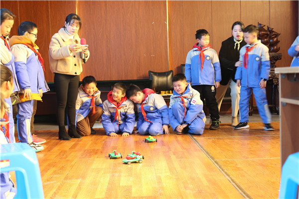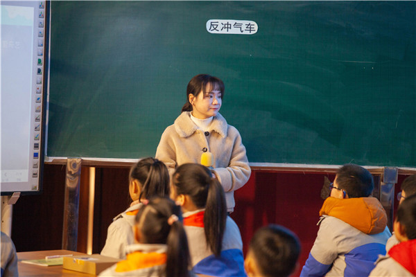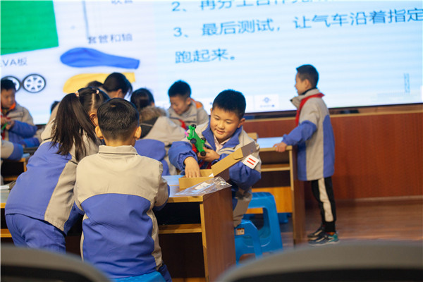 接着,学校steam创客团队的唐玥老师上了一堂别开生面的steam课——《反冲气车》。唐老师带领孩子们自己动手制作了一辆小气车,并且进行现场科学实验。这次steam课就像一把科学的金钥匙,丰富了孩子们的科学世界。