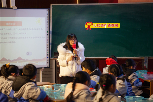 随后,青白江区教学能手曾纯会老师给大家带来了一堂生动有趣的创新劳动教育课程——《让红领巾更鲜艳》。曾老师通过让孩子自己发现红领巾的重要性,懂得尊重、爱护红领巾,再到最后开展劳动实践,让孩子们自己清洗红领巾,充分展现了在劳动中感受美和创造美的大弯精神。