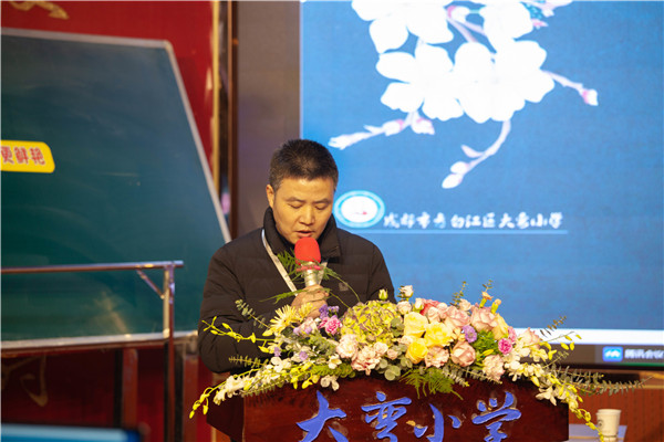 随后,程辉校长宣读成都市陶行知研究会课题《大美育背景下的小学多项融合课程实践研究》的立项文件。