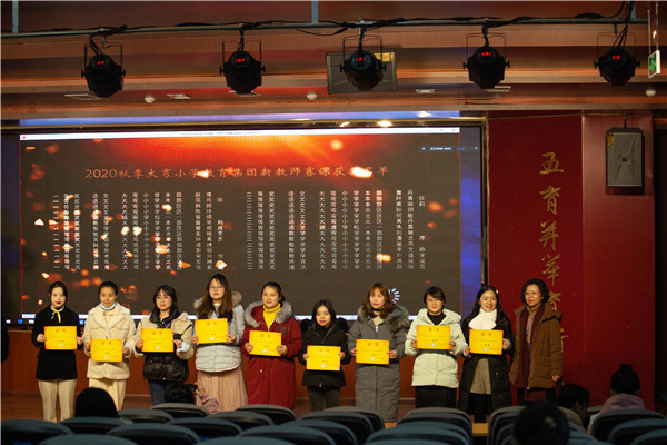 大弯小学赖冬梅副校长、程辉校长分别为本次学术节赛课、论文活动中获得优异成绩的老师颁奖。