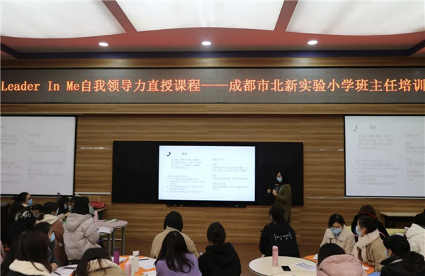 冬日,寒冷无比,《Leader In Me自我领导力直授课程》培训如期开展,成都市北新实验小学全体班主任齐聚阶梯教室,讨论热烈而温暖。