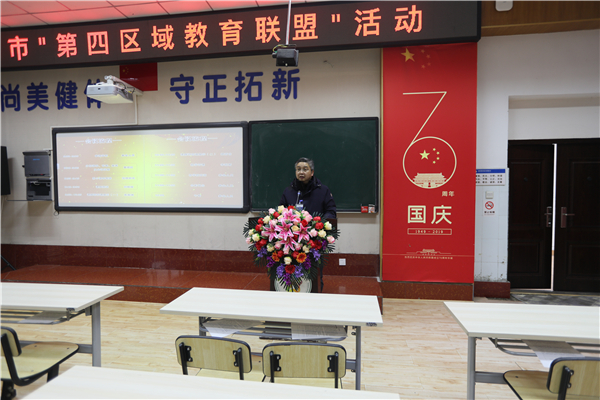 附小校长张胜对各兄弟学校的远道而来表示了热烈的欢迎,他引用荀子的“闻之不若见之,见之不若知之,知之不若行之”向大家介绍近几年来附小怎样一直坚持“以科研促进教学,以教学深化科研”,再将附小教学中的归本溯源和勇于创新的精神向大家娓娓道来,表达希望能通过本次活动优化区域教育联盟,建设资源共享平台。