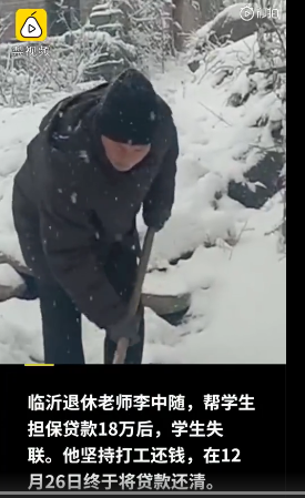 山东临沂,退休老师帮女学生贷款18万被拉黑。12月29日,李中随终于还清了贷款。他说,还清贷款的那一刻,有种释放的感觉,自己大哭了一场,感觉终于解脱能够走向光明。下一步,他希望寻求法律援助,让失联学生给自己一个说法。