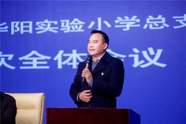 邓开宏同志代表社区治理和社事局党建处对华阳实小党总支的成立表示热烈祝贺,对学校党建工作给予充分肯定,并对下一步学校党建工作提出建议,希望华阳实小作为天府新区办学标杆单位紧抓省级教育综合改革实验区的机遇,进一步强化党建引领,创建属于华实的党建品牌、学校品牌、示范品牌。
