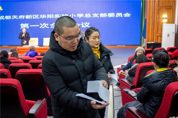 12月28日下午,中共成都天府新区华阳实验小学总支部委员会成立暨换届选举大会在学校阶梯教室隆重举行。本次大会应到党员51名,实到党员48名,毛刚同志主持大会。