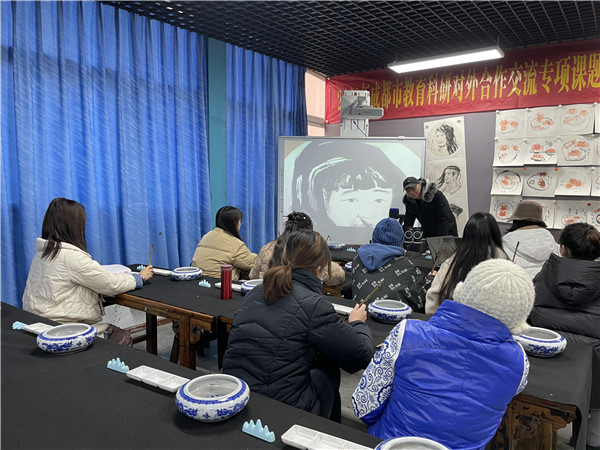 总结会后,秦伟老师以人物肖像为主题对全体美术老师进行了水墨画技能培训。培训既提高了老师们自身的水墨画技能水平,也提高了整个课题组的专业实践能力,从而推进了学校的美育研究。