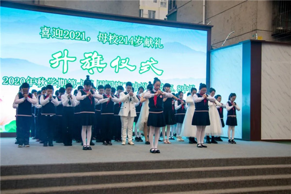 有一个神奇的地方,它使孩子们快乐成长——美丽的学校!在母校214岁生日之际,成都天府新区华阳实验小学(以下简称:华阳实小)本周国旗下的中队活动俨然变成了一场生日会,全校师生共同参加,该校一年级二班和5.8中队的孩子们作为特邀嘉宾,用自己的歌声和舞蹈为母校献上生日的祝福。